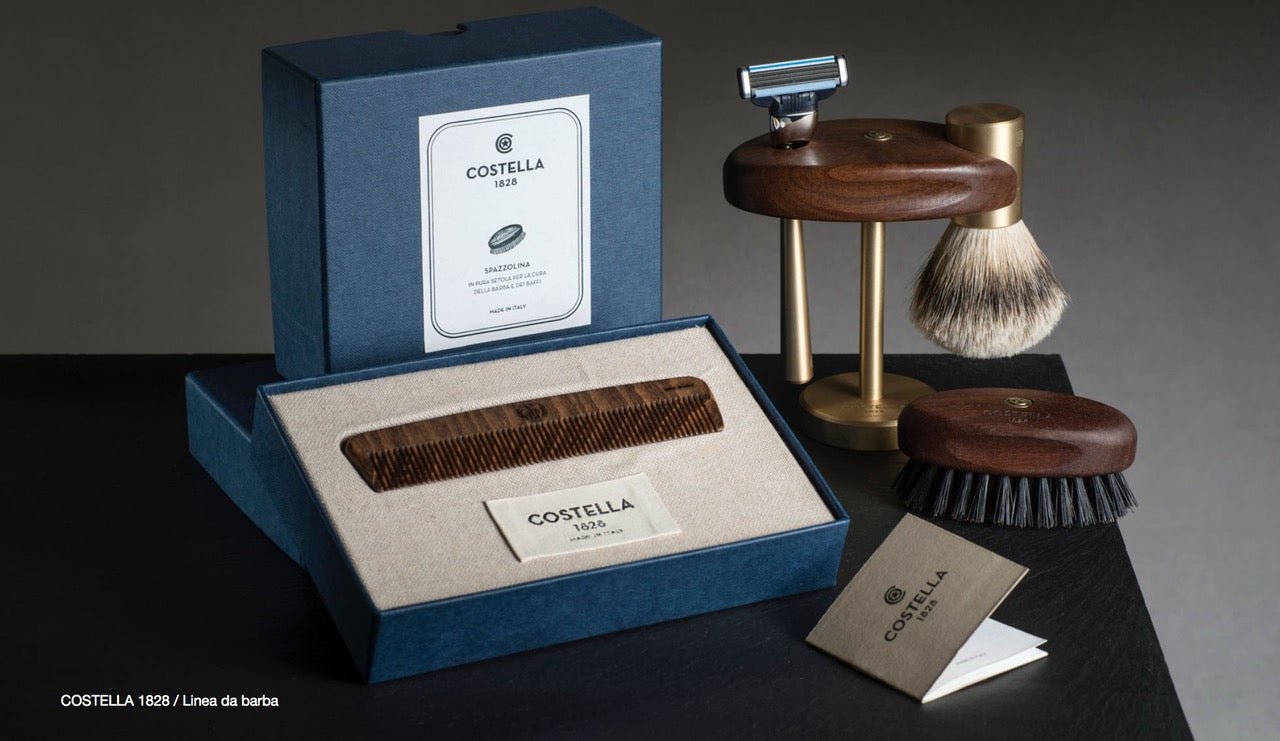 Una gamma di prodotti maschili per rasatura, grooming e spazzolatura dei capelli realizzati con un' intenzione fuori dal tempo ma sempre contemporanea. Da quasi due secoli Costella 1828 traduce l'essenzialità e lo stile genovese in oggetti durevoli per accompagnare e celebrare importanti gesti quotidiani.